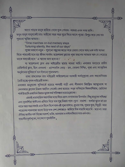 আমাদের দ্য মহেশতলা ক্লাব এন্ড লাইব্রেরীর পূজার পত্রিকায় কয়েক বছর আগে প্রকাশিত আমার একটা লেখা হঠাৎ করে হাতে এলো।